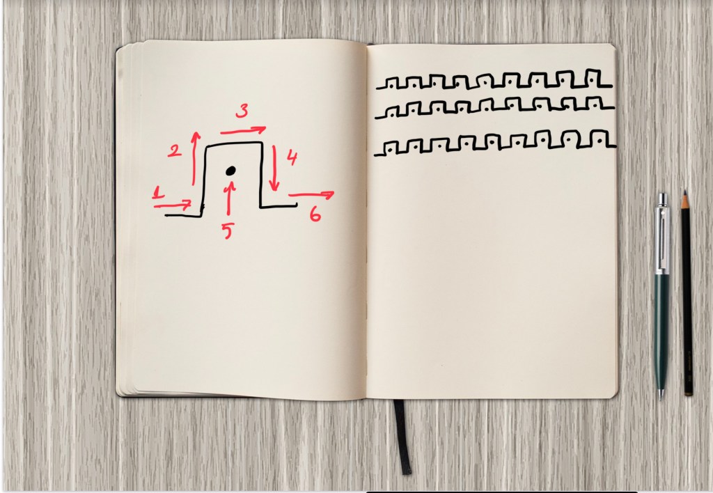 - Yazıya başlamadan önce aşağıda verilen şeklleri çizmesini isteyin. Sol sayfada yapılış şekli verilen çizim çocuğun “odaklanma” için doğru mesajları beyine iletmek üzere özel tasarlanmıştır. Çizimler bittikten sonra aynı sayfaya paragraf yazılabilir.