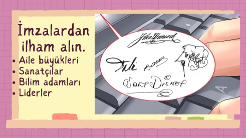 İmzanızı oluşturmadan veya yeniden tasarlamadan önce örnek aldığınız aile üyeleri, bilim adamları ya da sanatçıların imzalarını inceleyip bazı detaylarından ilham almanızda hiçbir sakınca yok.